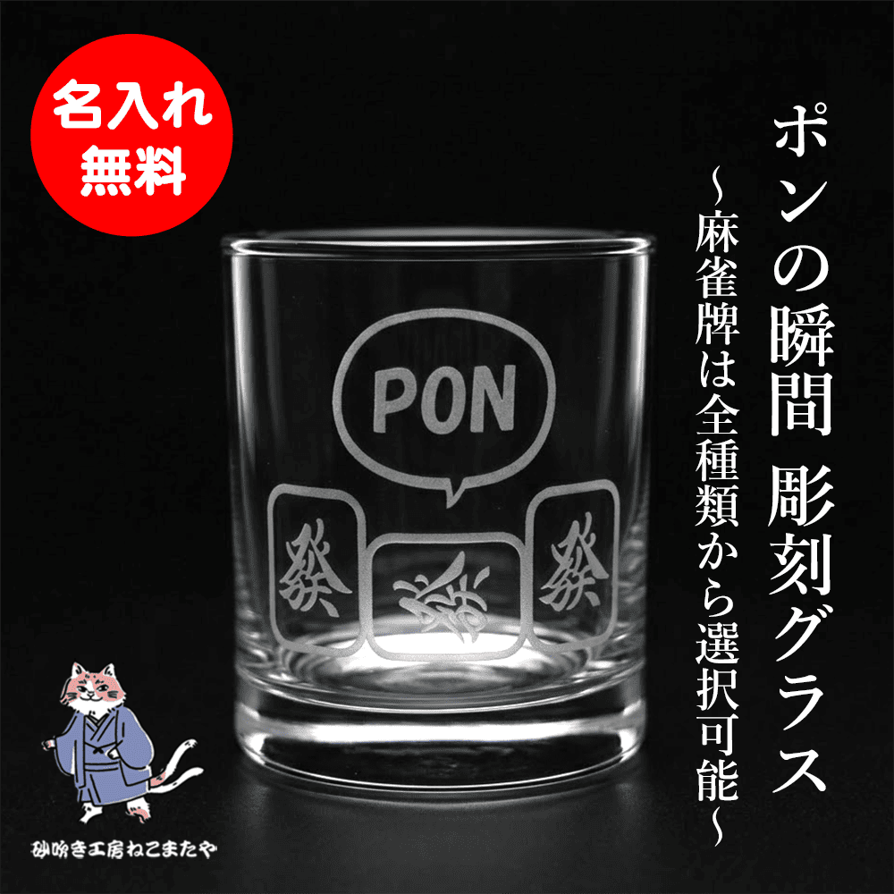 名入れ無料 選べる麻雀牌 ポンの瞬間を彫刻! 日本製ロックグラス 275ml ギフト 記念品にも 砂吹き工房ねこまたや プレゼント ギフト 記念日 誕生日 母の日 父の日 クリスマス 敬老の日