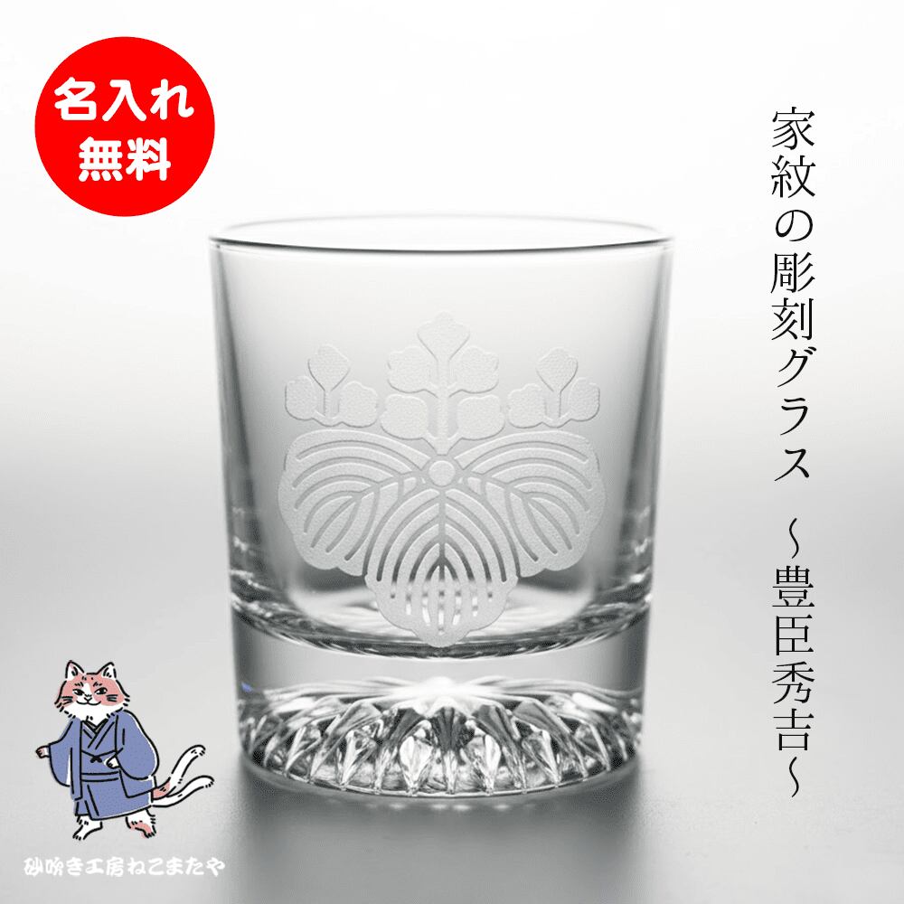 名入れ無料 ロックグラス 豊臣秀吉 家紋(五七桐)彫刻 戦国武将デザイン ウィスキー 焼酎 誕生日 父の日 敬老の日 ギフト