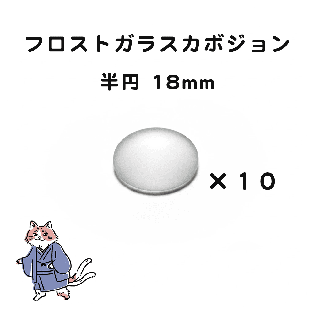 ガラスカボジョン 半円 フロスト加工済み 18mm 10個セット ハンドメイドパーツ 素材 アクセサリー 砂吹き工房ねこまたや