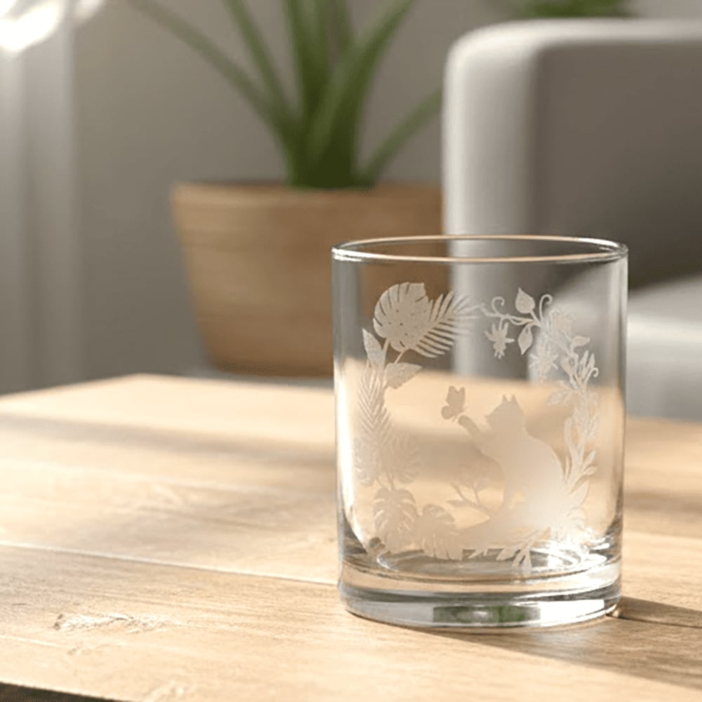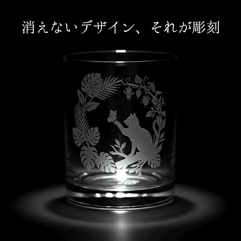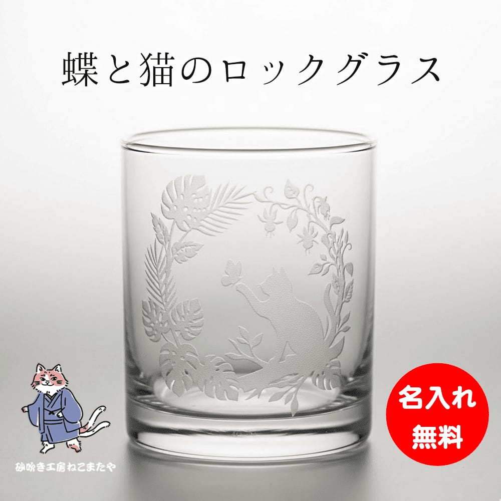 名入れ無料 ボタニカル 蝶と猫のロックグラス 日本製 275ml ギフト 記念品にも 砂吹き工房ねこまたや プレゼント ギフト 記念日 誕生日 母の日 父の日 クリスマス 敬老の日