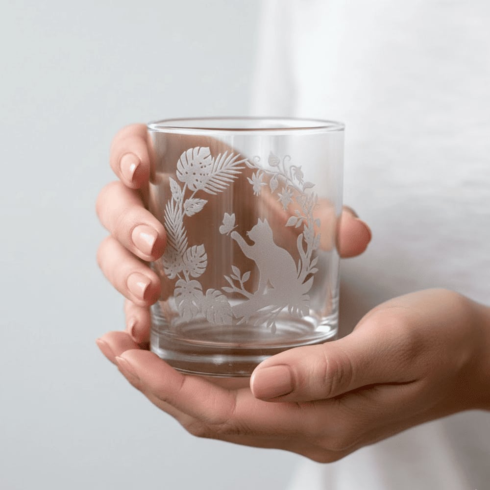 日本製ソーダライムガラスに、サンドブラストで一つひとつ丁寧に彫刻。