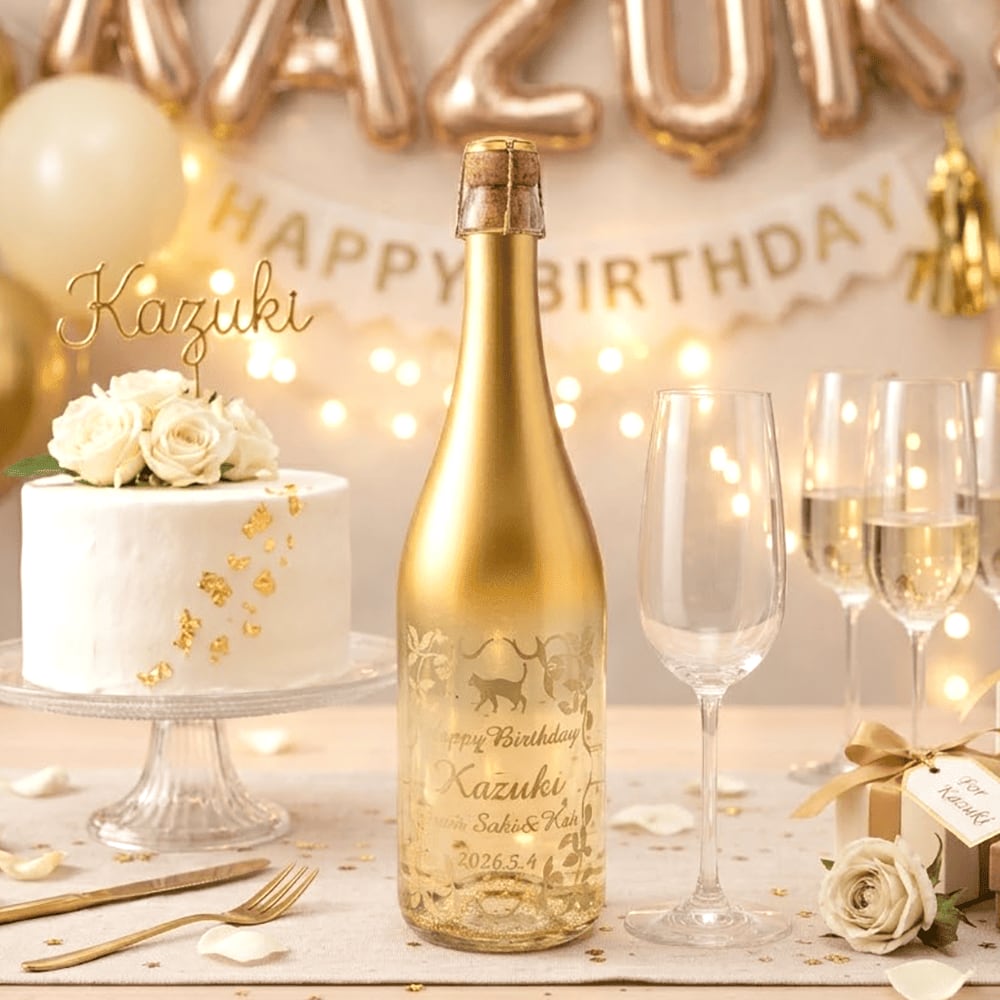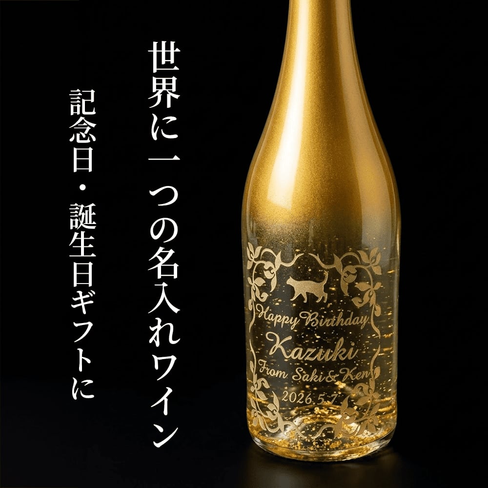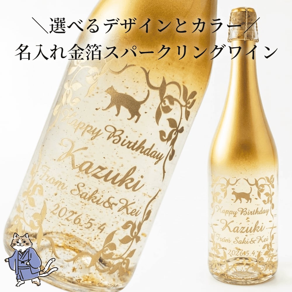 世界に一本だけ。猫と金箔がきらめく、特別な名入れスパークリングワイン。