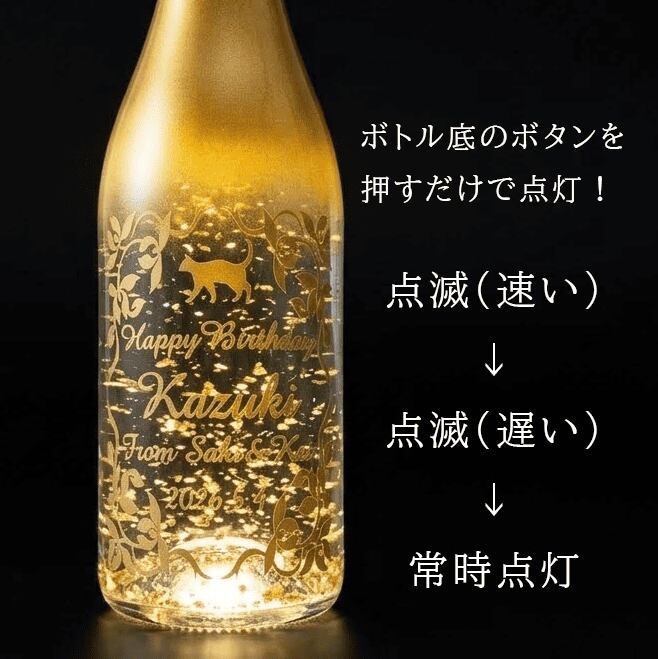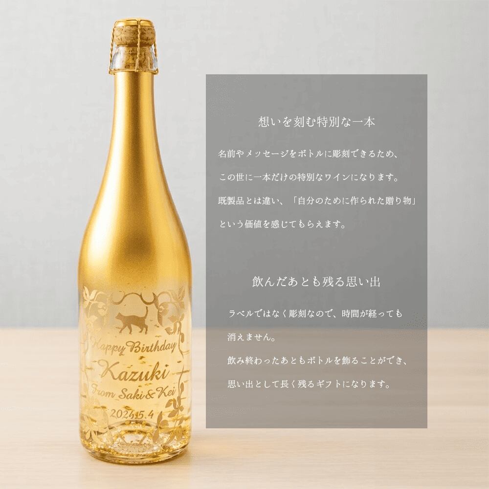 光る 猫の名入れ金箔スパークリングワイン 彫刻 ギフト 猫好き プレゼント 記念日 誕生日 名入れワイン LED