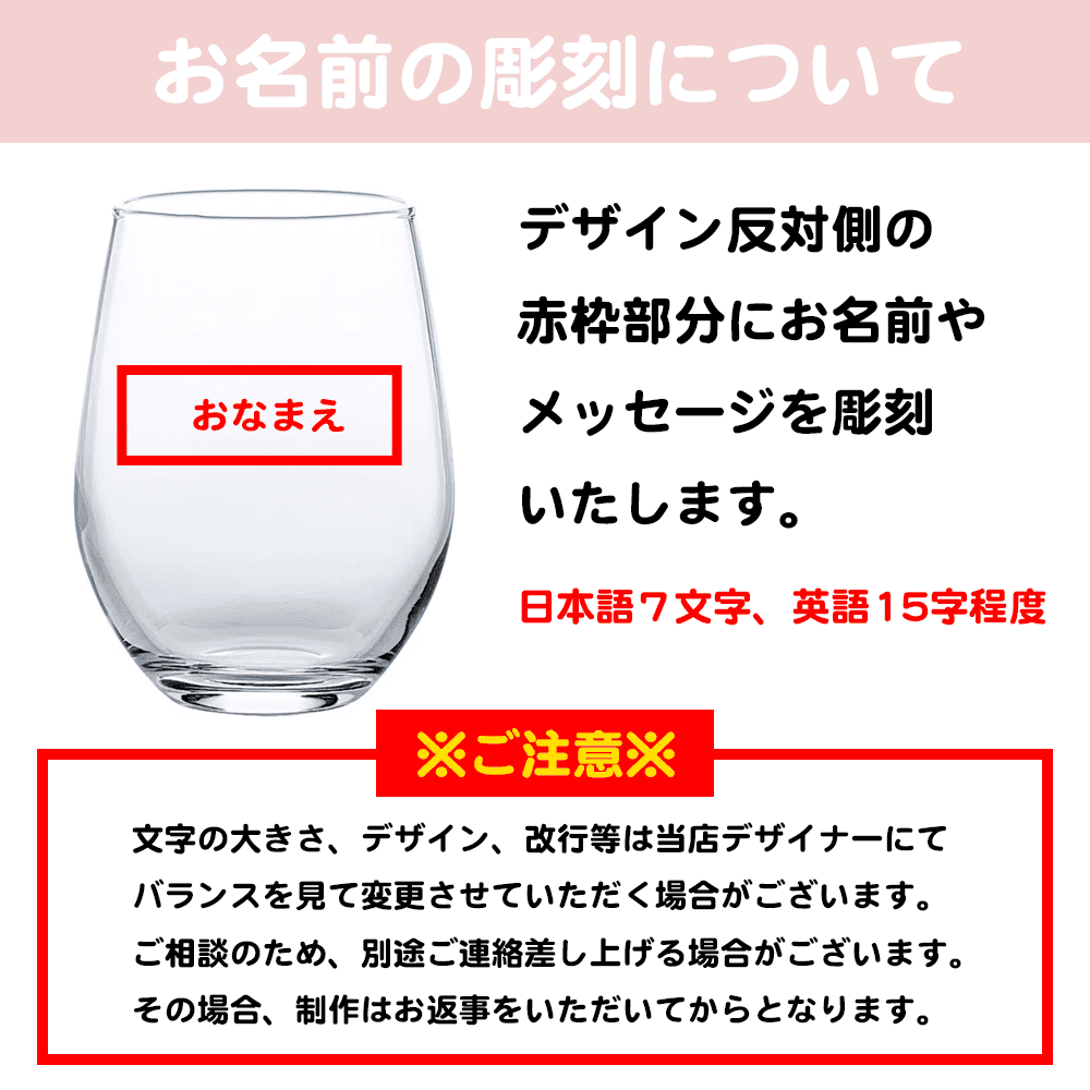 名前や記念日を入れることで、世界にひとつだけのオリジナルグラスに。