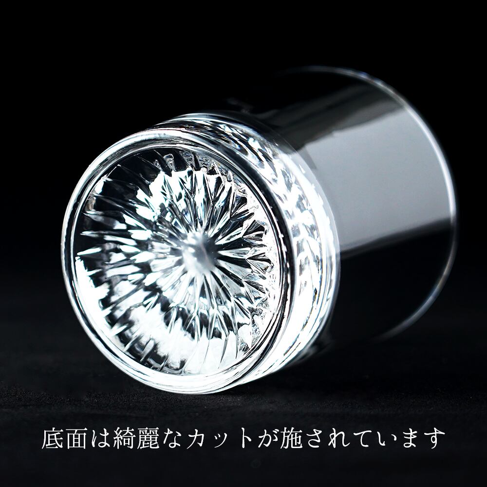 ウイスキーを注げば、琥珀色の奥に紋が静かに浮かび上がり、重厚で格調高い時間を演出します。