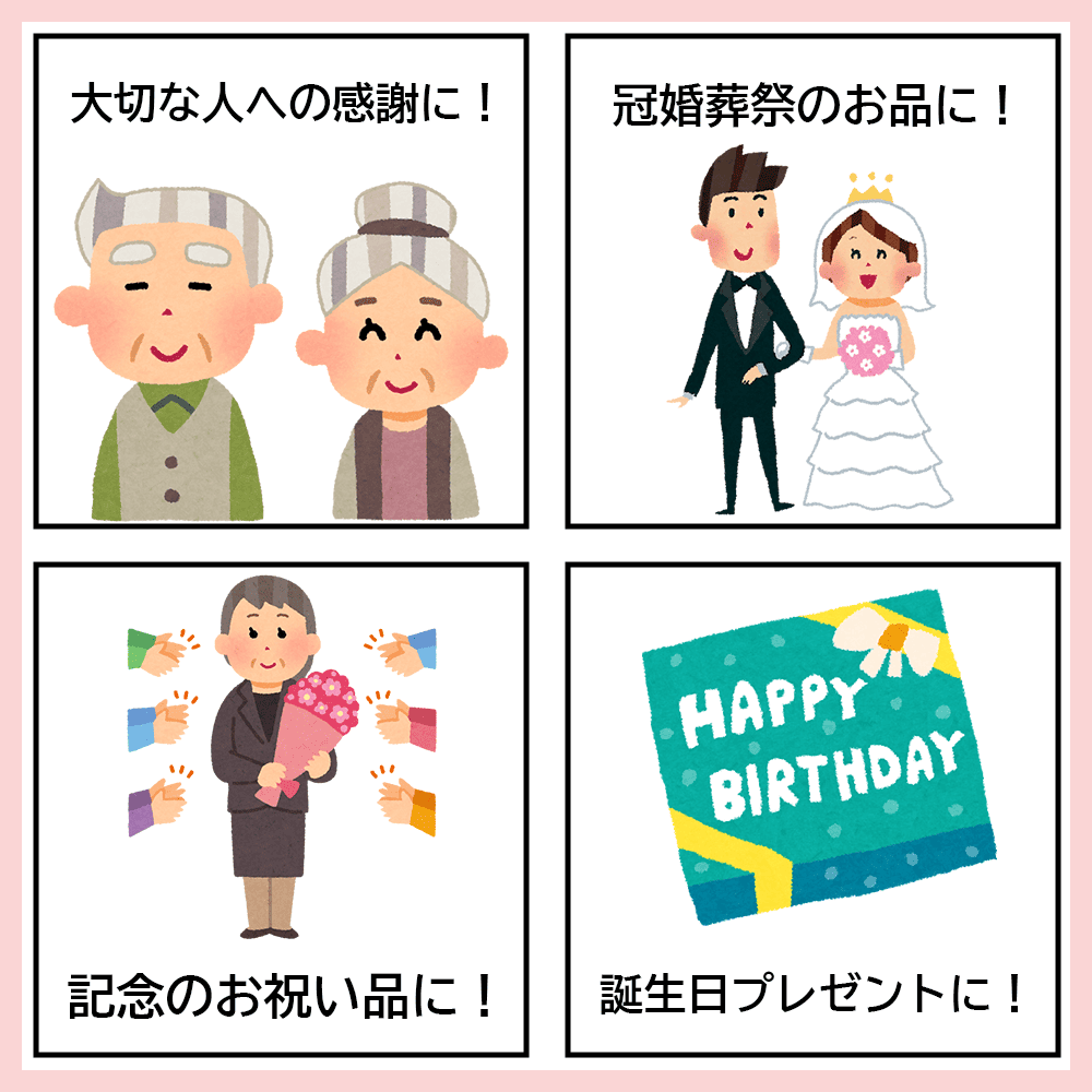 様々な用途にプレゼントとしてご利用いただけます。