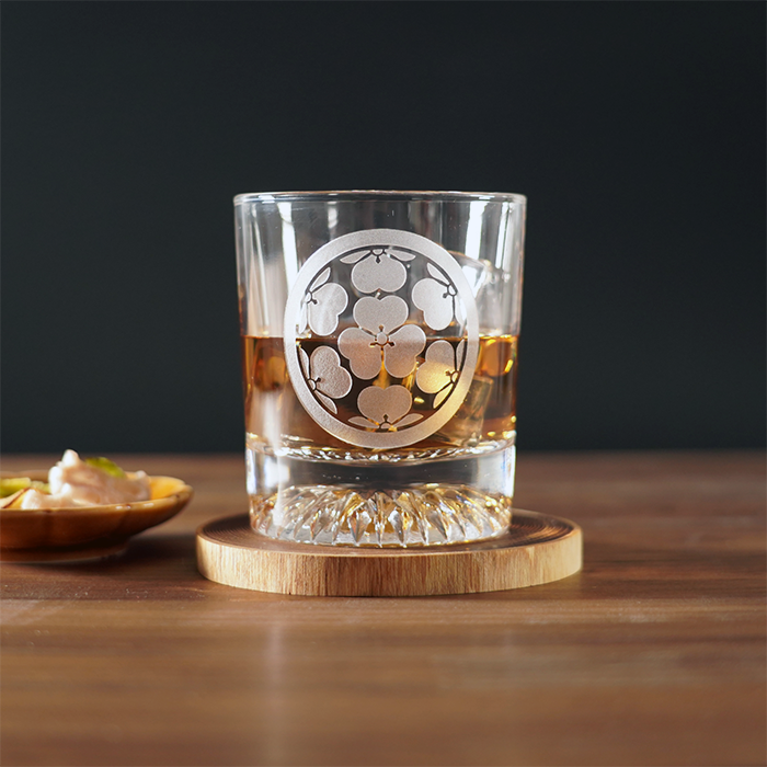 「砂吹き工房ねこまたや」がお届けする、戦国ロマンと伝統美が融合したロックグラス。