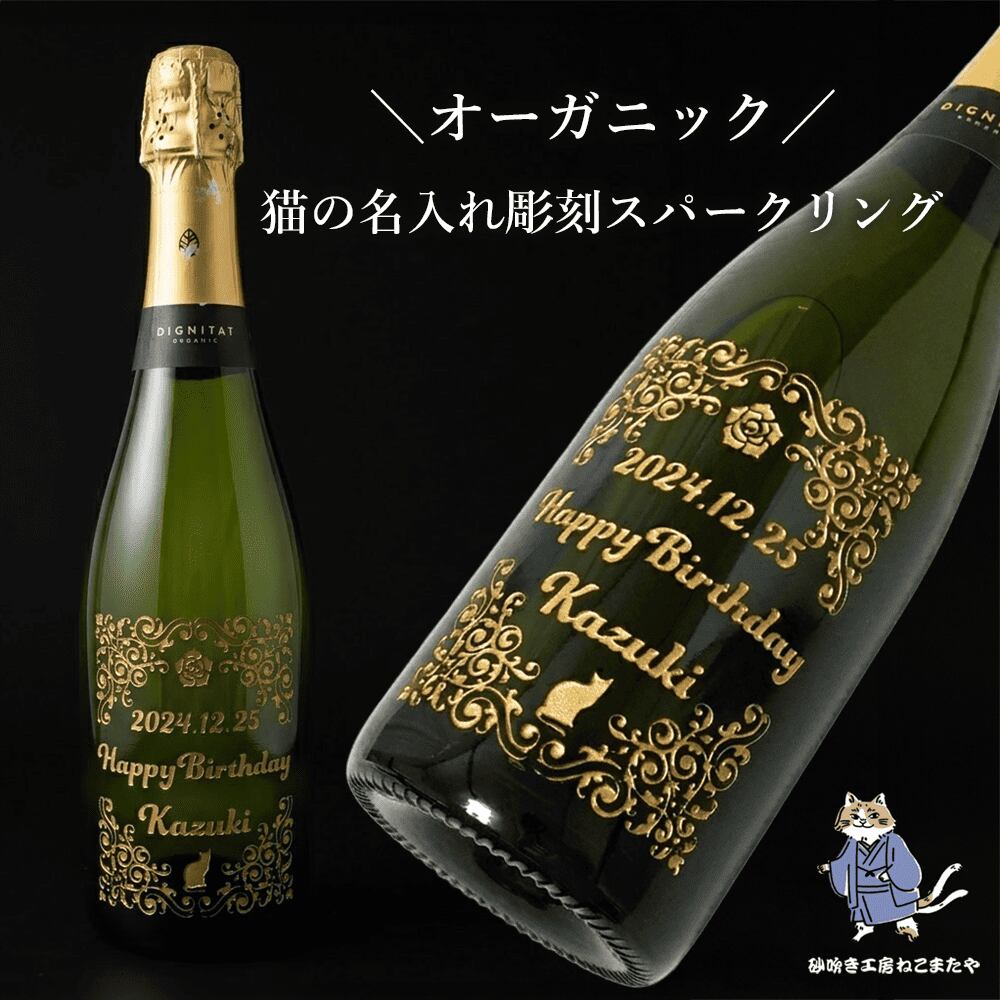 名入れ 猫 オーガニック スパークリングワイン シャンパン オリシャン お酒 彫刻ボトル 誕生日 結婚 還暦 記念 周年 祝い ギフト プレゼント