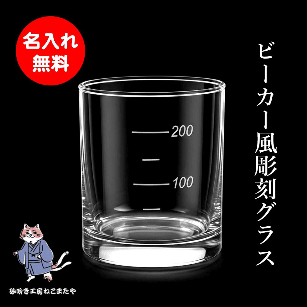 名入れ無料 ビーカー風ロックグラス サンドブラスト彫刻 メモリデザイン 日本製 275ml おしゃれ&ユニーク ギフト対応 プレゼント・記念日にも